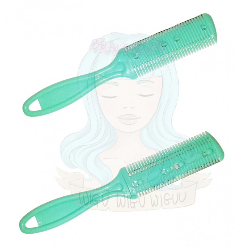 Grzebień z ostrzem, dzięki któremu można delikatnie podciąć i wystylizować perukę.