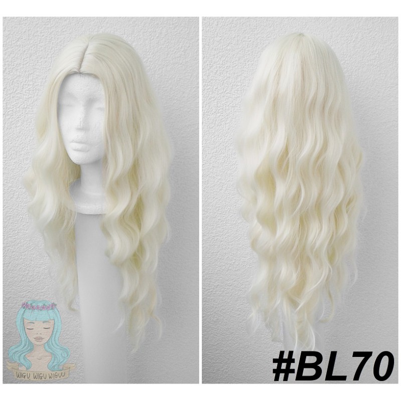 Falowany wig z przedziałkiem.