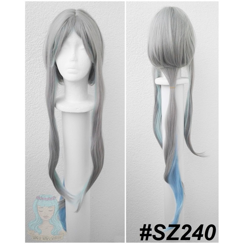Kolor: Szary + błękitno-zielony/turkusowy na pasmach z przodu i grzywce oraz błękit od spodu na kitce.