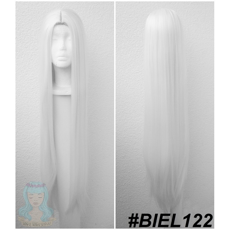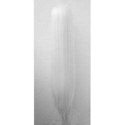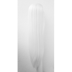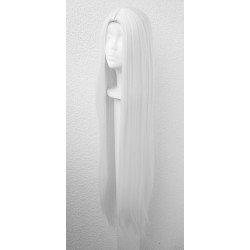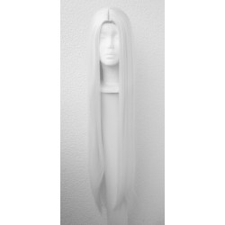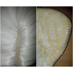 Beżowy czepek delikatnie przebija przez biel włosia jak w większości białych peruk.