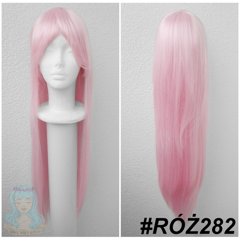 Różowy, długi wig.