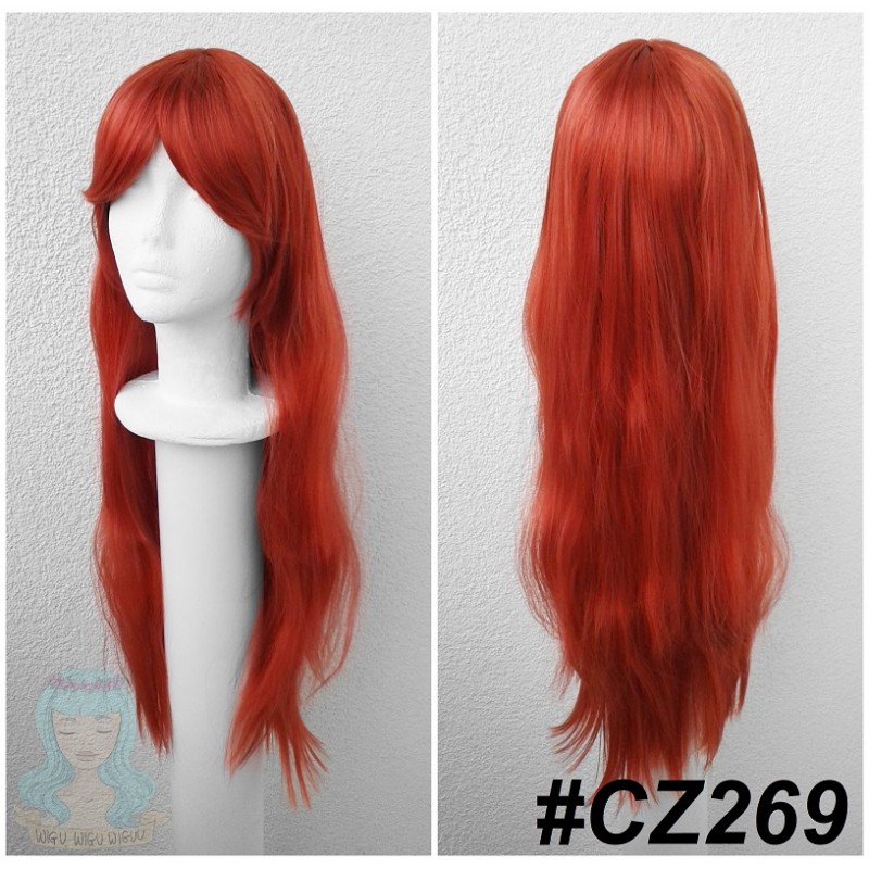 Czerwony wig z grzywką.