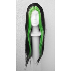 Czarny wig z zielonymi pasemkami.