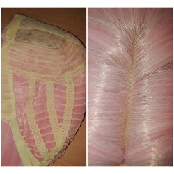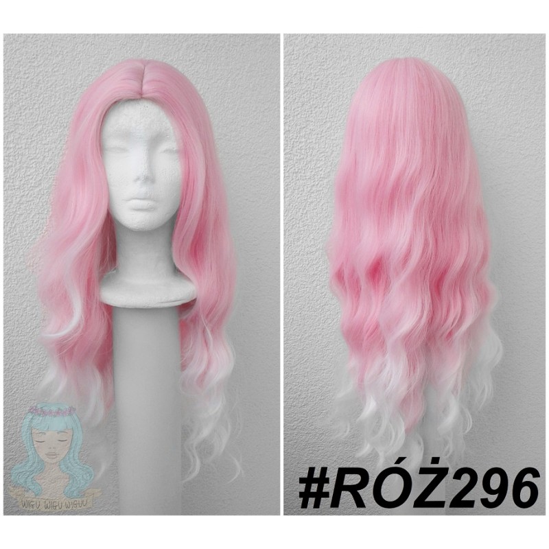 Różowy wig z przedziałkiem.