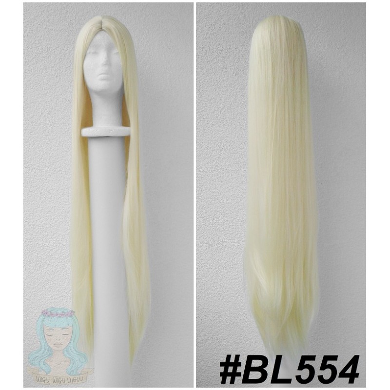Długi, blond wig z przedziałkiem.