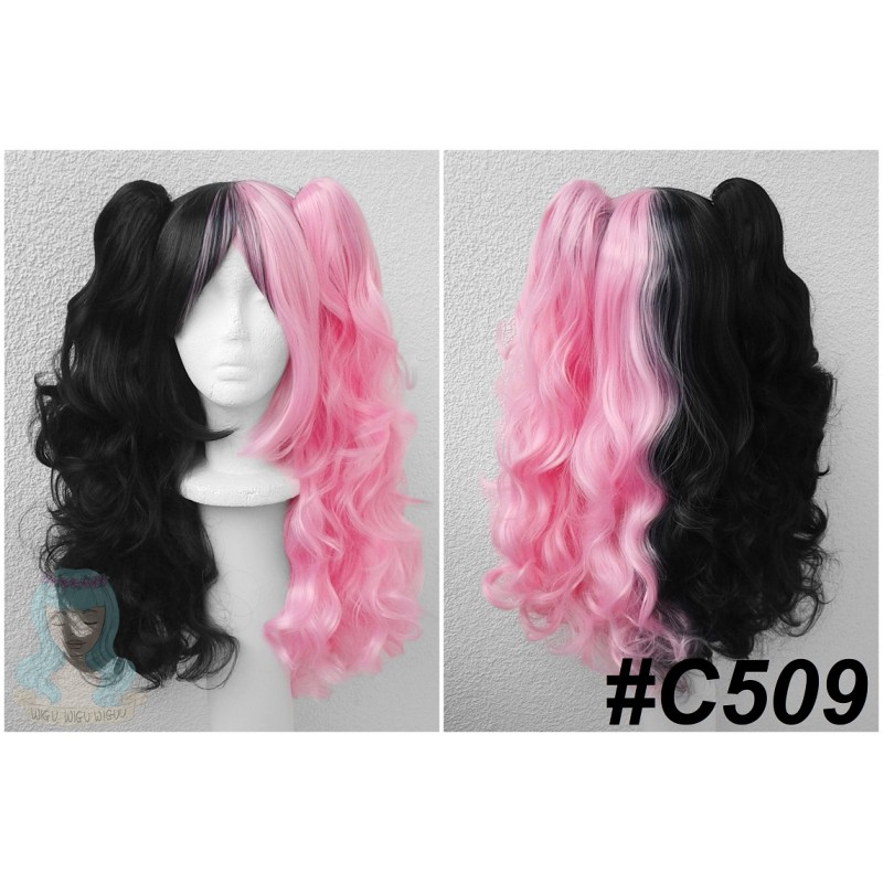 Czarno-różowy wig z kitkami.