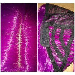 Wig z przedziałkiem w kolorze magenta.