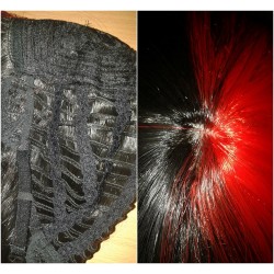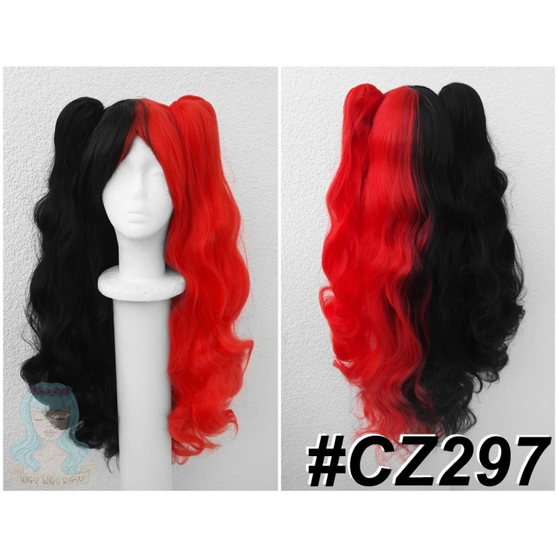 Czerwona-czarny wig z kitkami.