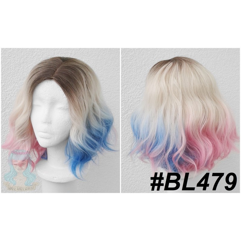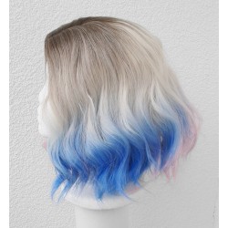 Kolor: blond + róż + niebieski + brązowy odrost