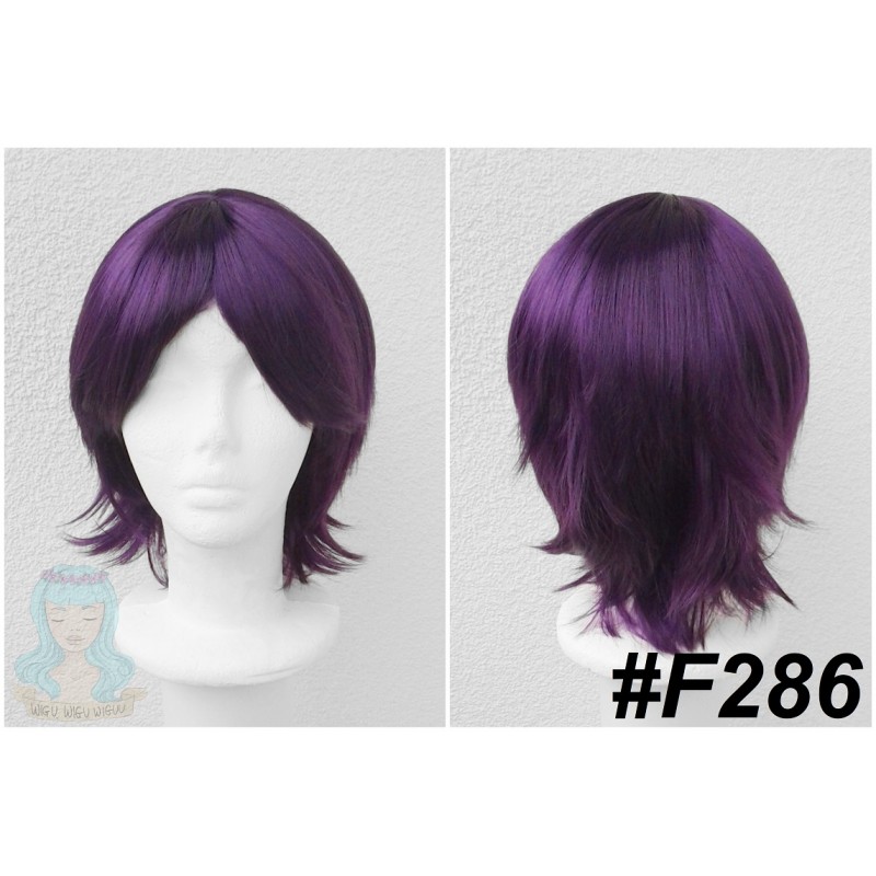 Krótki, fioletowy wig.