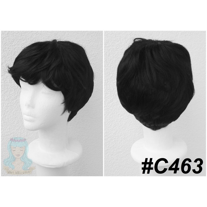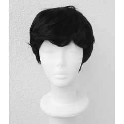 Krótki, czarny wig.