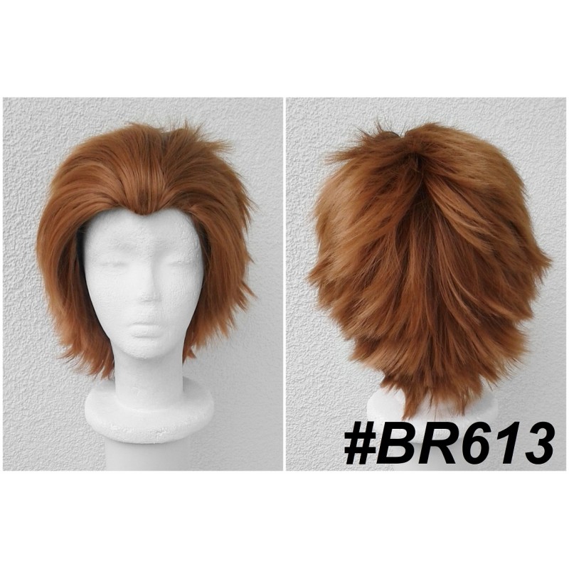 Krótki, brązowy wig.
