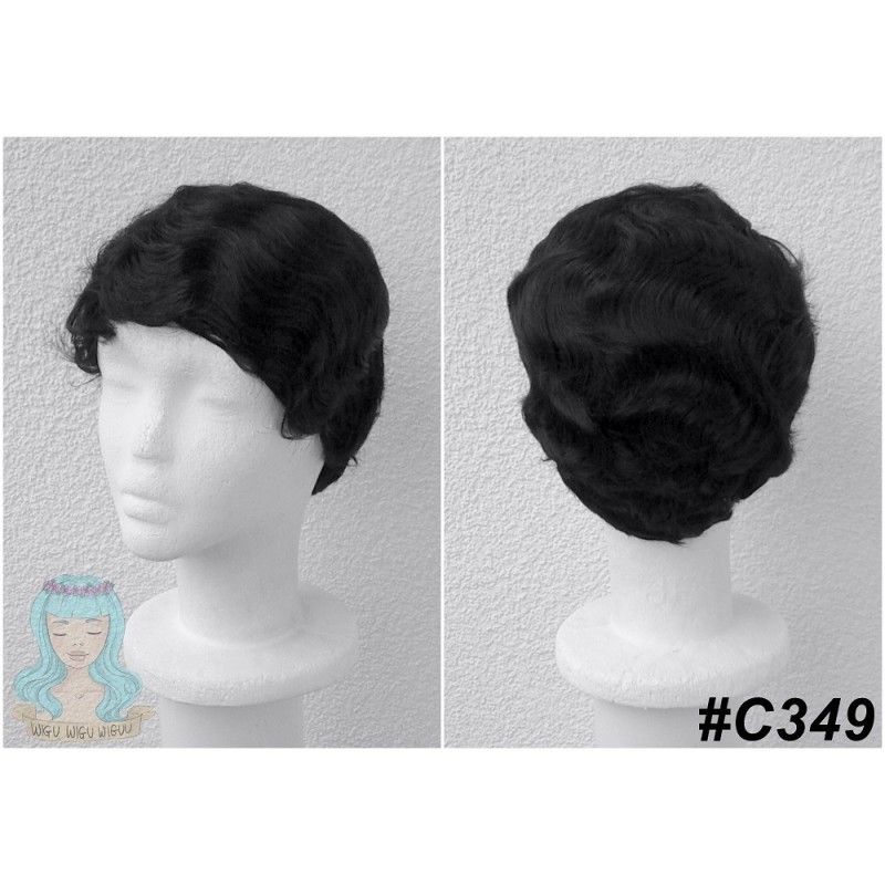 Krótki, falowany, czarny wig.