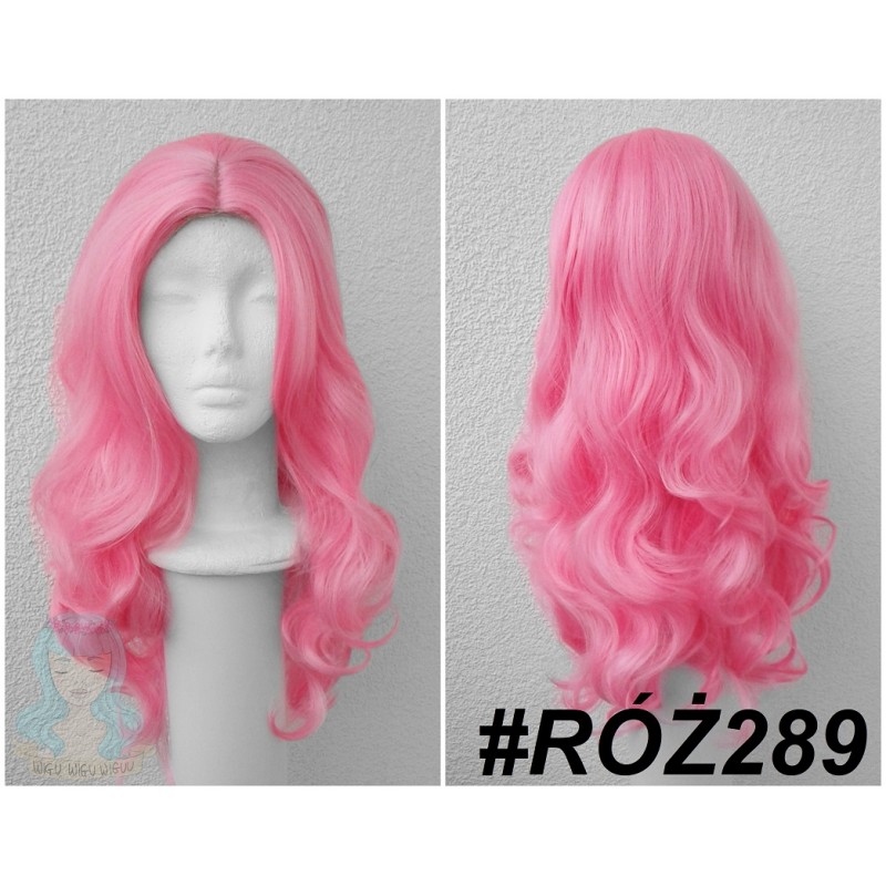 Różowy, falowany wig.